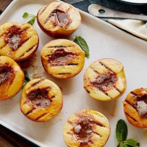 Photo Credit: Food & Wine Grilled Peaches with Cinnamon Sugar Butter - Ripe peaches on the grill with a little sweetness creates a simple yet succulent side dish or dessert.