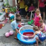 - Place a dish bucket in the center of a kiddie pool.